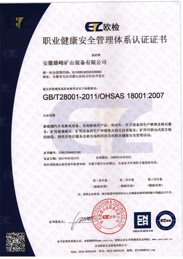 安徽天柱雄峰機(jī)電有限公司隸屬于安徽雄峰集團(tuán),公司座落在國家5A級風(fēng)景名勝區(qū)--天柱山腳下,是一家專業(yè)從事研發(fā)、生產(chǎn)、銷售礦山機(jī)械、礦用安全設(shè)備、機(jī)電設(shè)備及國際貿(mào)易的現(xiàn)代高新技術(shù)企業(yè)。公司被評定為國家科技部創(chuàng)新基金項目和國債項目重點(diǎn)支持單位、安徽省優(yōu)秀創(chuàng)新型企業(yè)。公司擁有省級企業(yè)技術(shù)中心和2個研究所,并與中國電子科技集團(tuán)合肥38研究所建立戰(zhàn)略合作關(guān)系。公司引用中國航天技術(shù),研發(fā)生產(chǎn)的礦用可移動式救生艙和避難硐室可以在礦井發(fā)送事故后,為無法及時撤離的礦工提供安全的避難和等待救援的場所。該產(chǎn)品經(jīng)過模擬災(zāi)變環(huán)境下真人106小時的生存試驗、高溫試驗、爆炸試驗等環(huán)節(jié)的檢測,已取得國家礦用產(chǎn)品安全標(biāo)志證書,具備國際領(lǐng)先技術(shù);且已取得專利23項,其中兩項發(fā)明專利(大型密閉門新型專利、逃生裝置新型專利)。公司秉承“誠信贏得市場,創(chuàng)新引領(lǐng)未來”的經(jīng)營理念,在“瞄準(zhǔn)高精尖,面向全球化”的發(fā)展戰(zhàn)略指導(dǎo)下,依托雄厚的科技力量和人才優(yōu)勢,致力打造一流的礦用安全裝備,保障礦工生命安全,共建人類幸福家園!