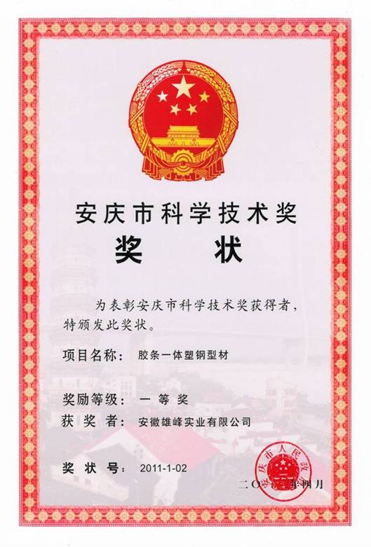 安徽省質(zhì)量獎(jiǎng)