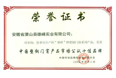 • 中國塑鋼門窗產(chǎn)品市場公認(rèn)十佳品牌點擊查看大圖