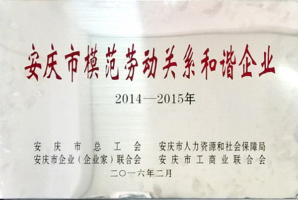 • 安慶市模范勞動關(guān)系和諧企業(yè)點擊查看大圖